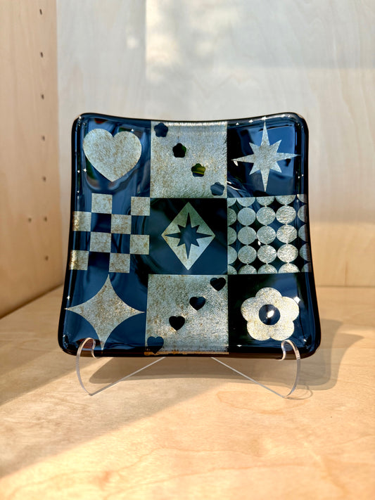 Fused 6” Square Dish in Sandblasted Black & Gold