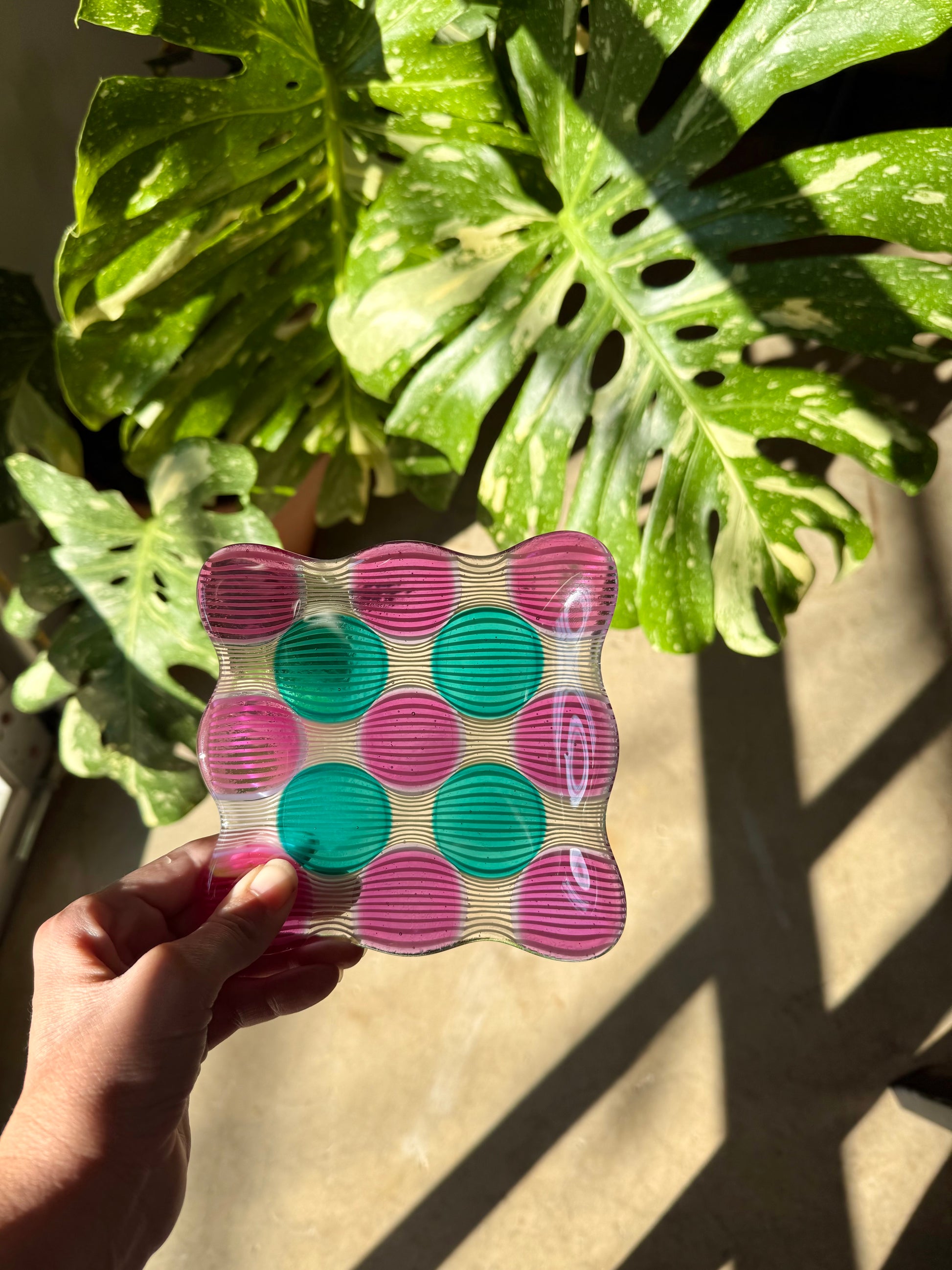 Fused 5.5” Catch-All Dish in Fuchsia & Teal