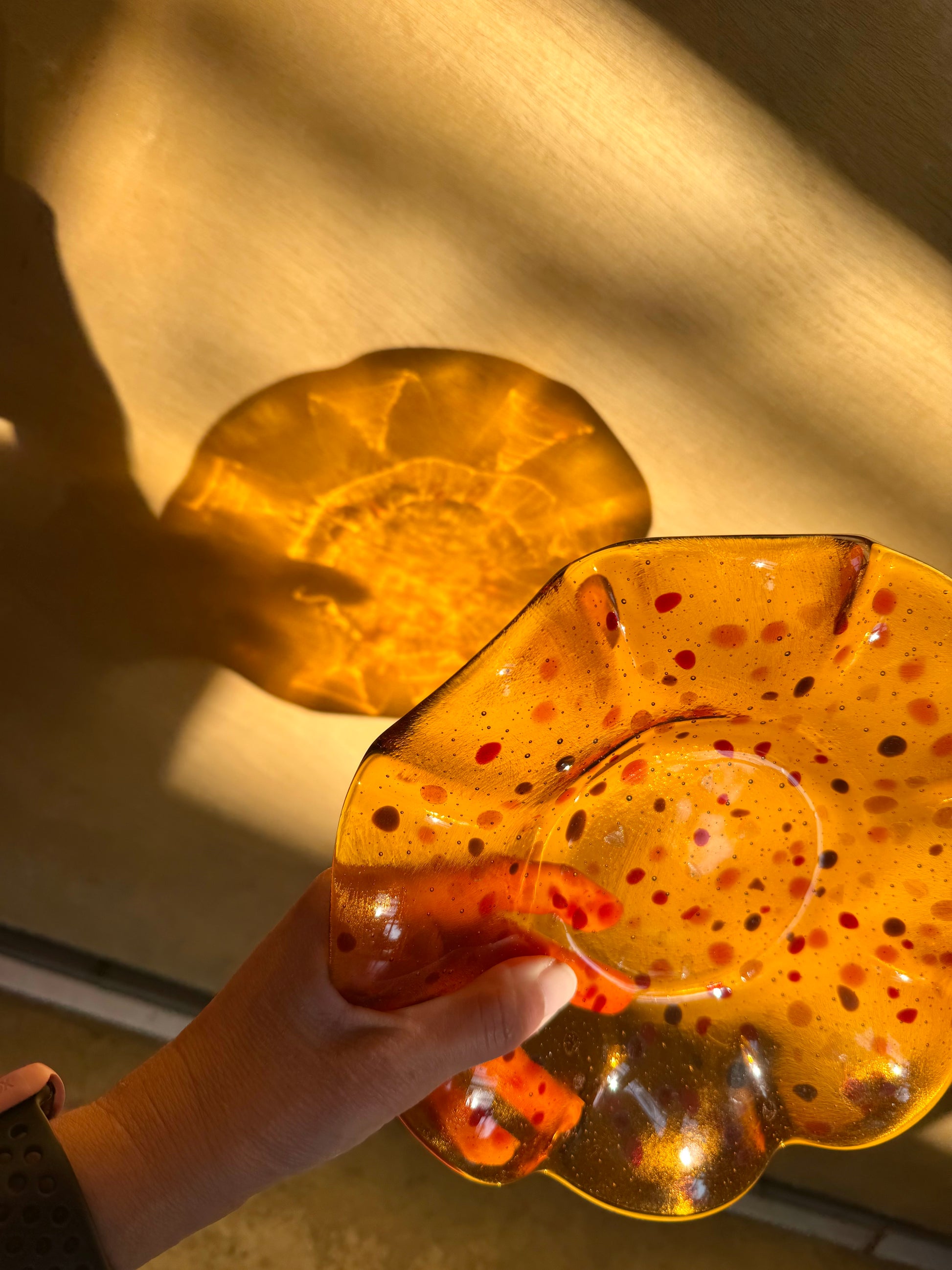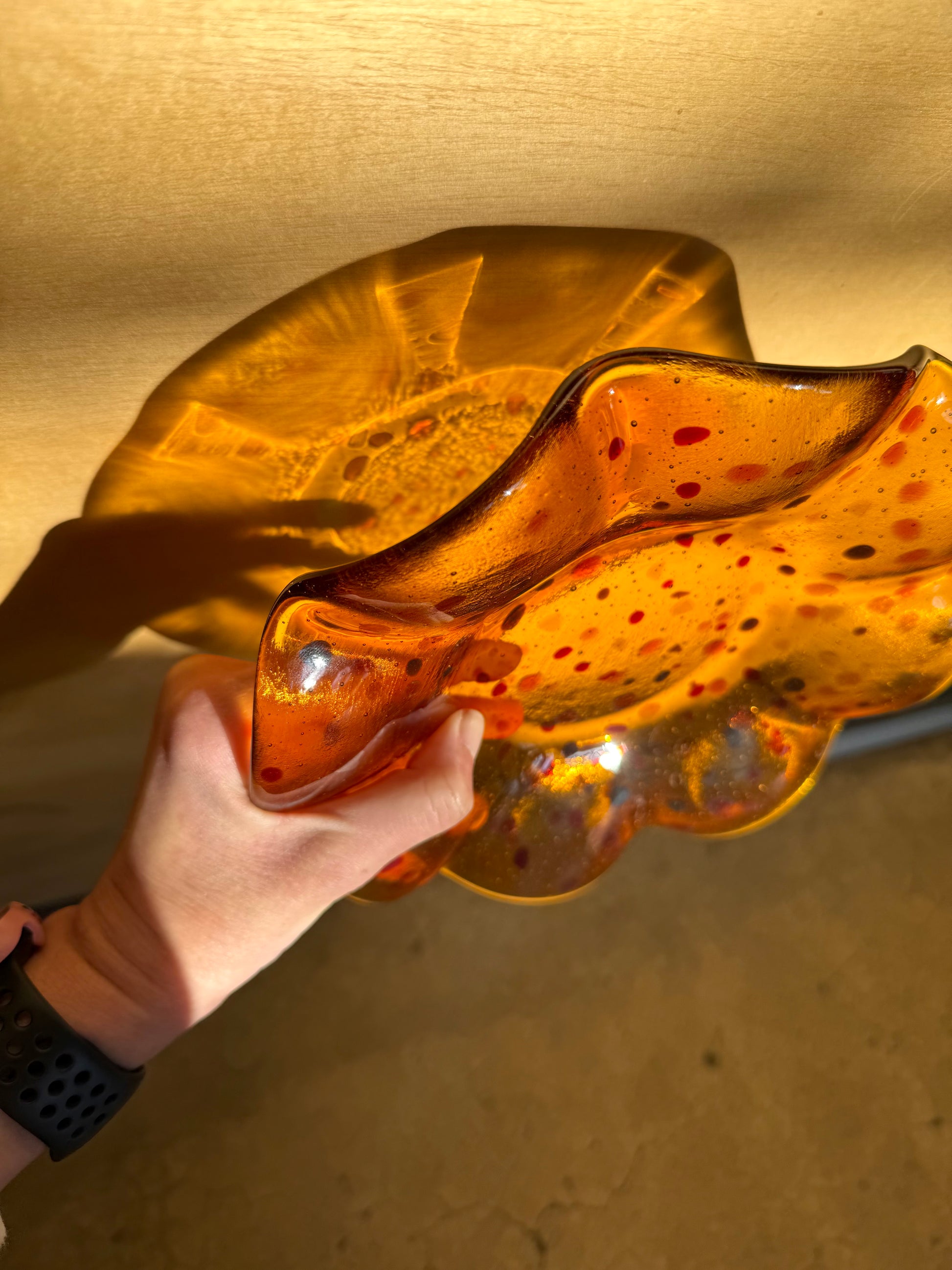 Fused 8.25” Scalloped Bowl in Speckled Amber