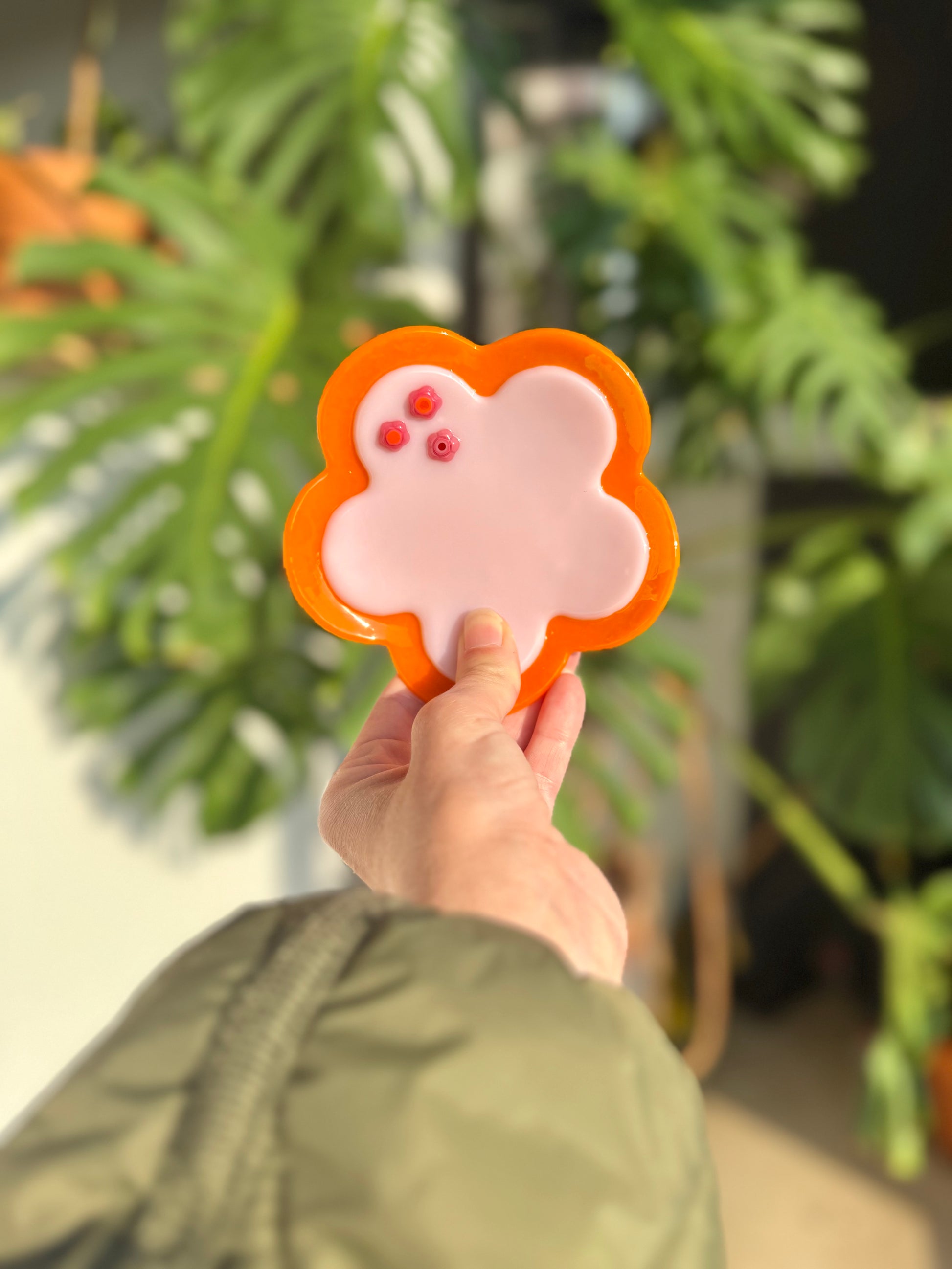 Fused Retro Flower Trinket Dish - Orange/Baby Pink/Pink