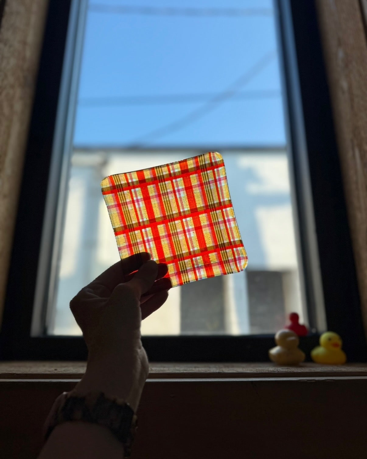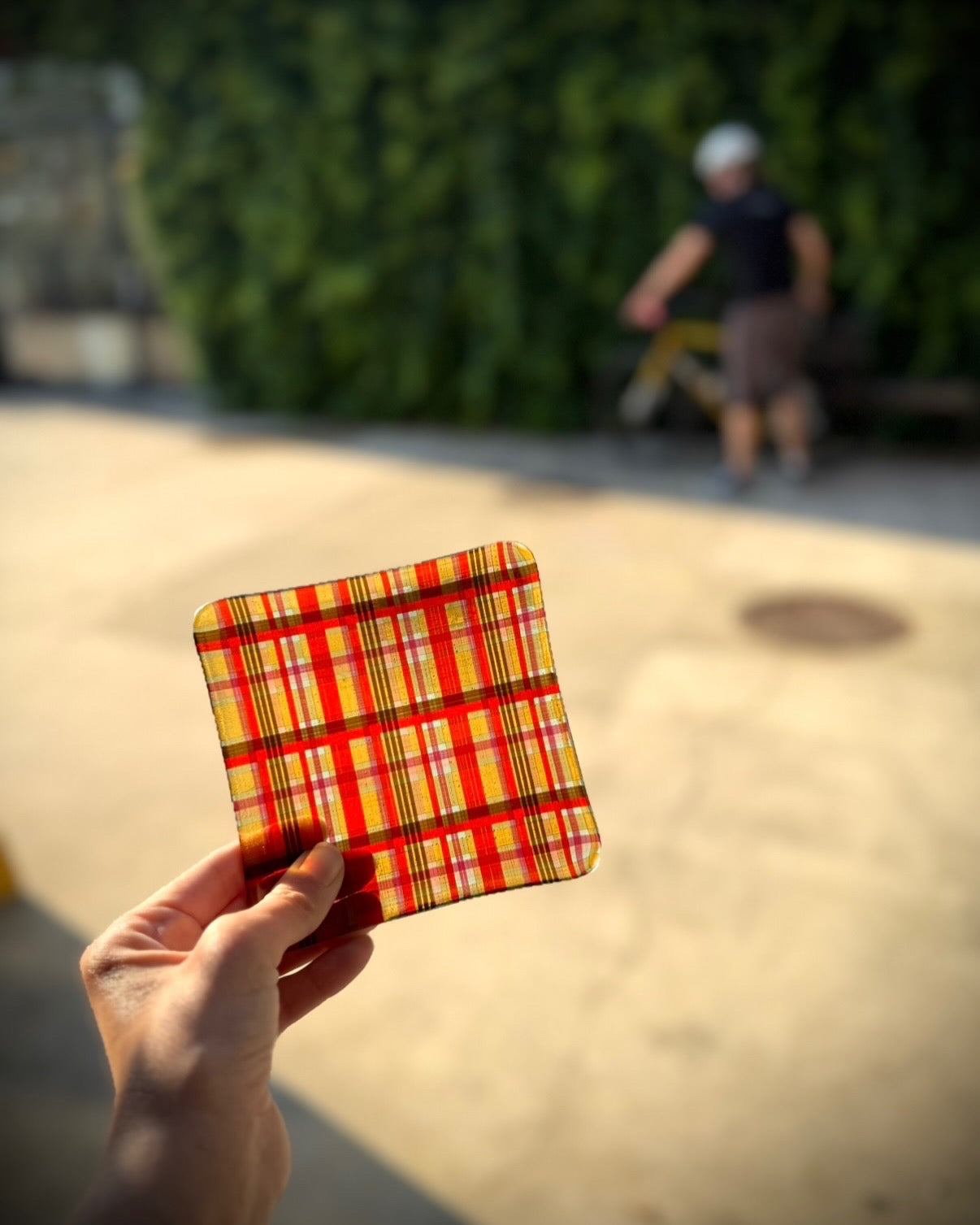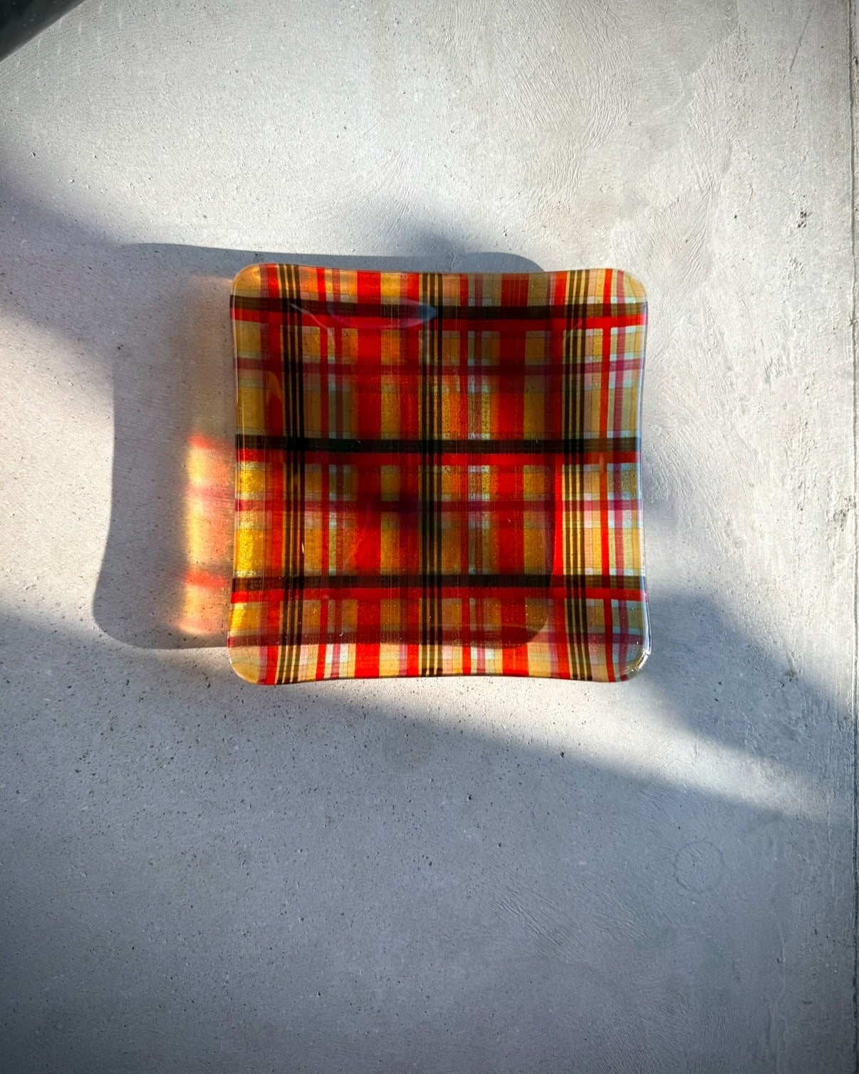 I painstakingly arranged hundreds of pieces of 1mm glass stringers to create this warm nostalgic plaid. And unlike my optic plaid dishes, this one’s food safe!